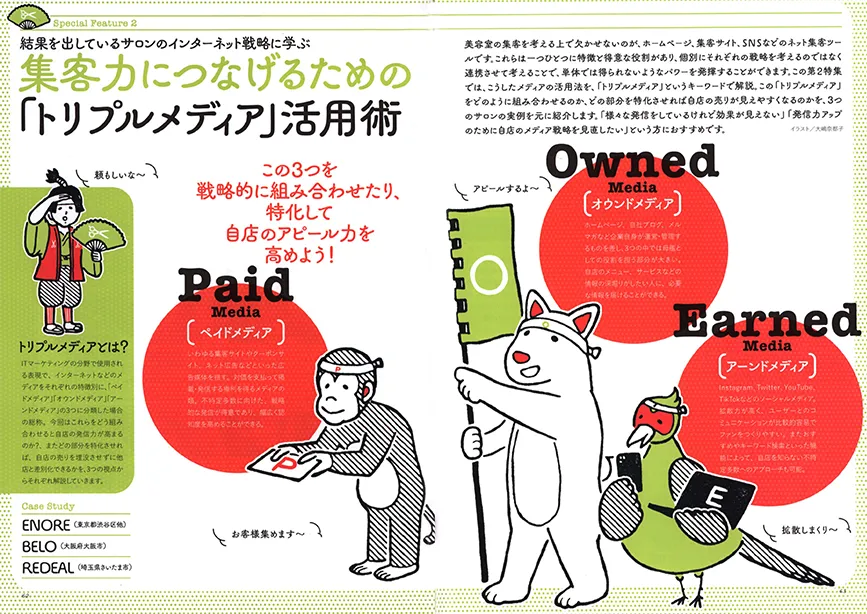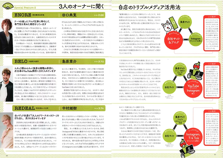 最先端のヘアスタイルを中心に、様々なメディアでも取り上げられる